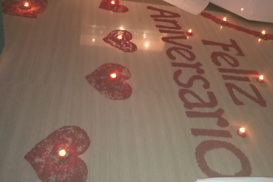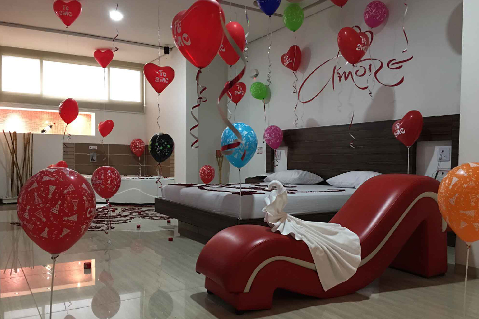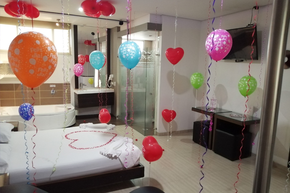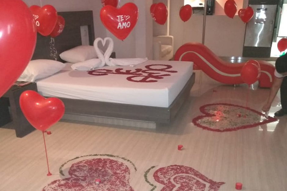 Globos rojos en corazón con "Te amo" "Te quiero" "Feliz Día"