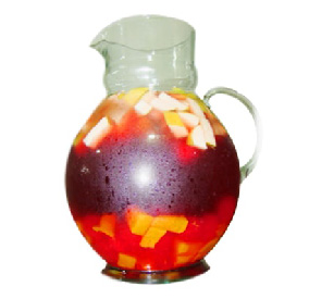 Manzanas, duraznos, bolts melón, vodka, cointreau, vino rose, cranberry, cerezas.